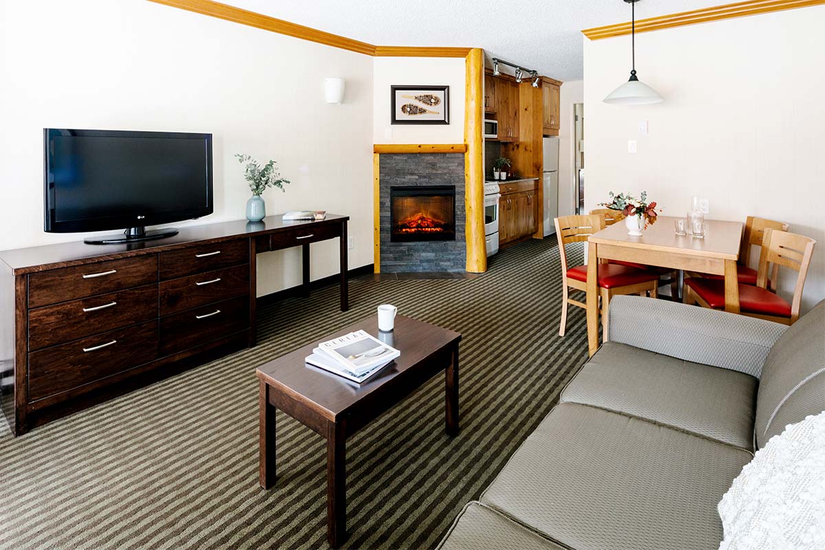 Find warm Canadian Rockies hospitality and great value at Marmot Lodge. Our inviting and spacious rooms and suites all have motel-style exterior entry for your convenience. Enjoy dining on-site at Evil Dave’s and Starbucks for your morning adventure fuel. Don’t miss the Pursuit Adventure Centre store where you can book activities and pick up all your gifts and souvenirs.